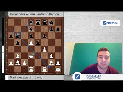 Voy a analizar una de las partidas mas interesantes de los españoles y uno de los iniciadores de chess24 , David Marinez , mas conocido como el divis , con sus 2400 de elo y hizo una partida maravillosa contra Antonio Hernández , la partida fue una siciliana con 2...a6 , todo era normal hasta que en la jugada 21 David juega Ae4 , el negro juega g6 y David hace un grandísimo sacrificio , Axg6 , primer sacrificio de David , la posición ya daba mas de dos de ventaja para Divis , Antonio acepta el sacrificio y se lo come fxg6 y Dxg6+ , Antonio mueve su rey a H8 y David demuestra su talento y hace al toque Tf4 ya calculada antes por el , con sus cinco puntos de ventaja David continua haciendo una partidaza , y en la jugada 30. Axe5 , otro sacrificio muy bonito que Antonio no podía aceptar por una red de mate , y hace Ae8 , jugada muy mala , la posición estaba ya muy ganada por parte de David y en la jugada 34 ve que cambiando todas las piezas ganaba el final de alfiles y peones , muy bien hecho por su parte ,( todas las jugadas en chess24 ) y Pepe Cuenca la ha analizado en este video mas detallada